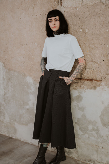 Ausgestellter Rock mit Falten und schöner Oberfläche