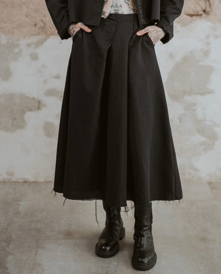 Gefütterter Rock mit eckig geschnittenen, seitlichen Eingriffstaschen und tiefen Falten im