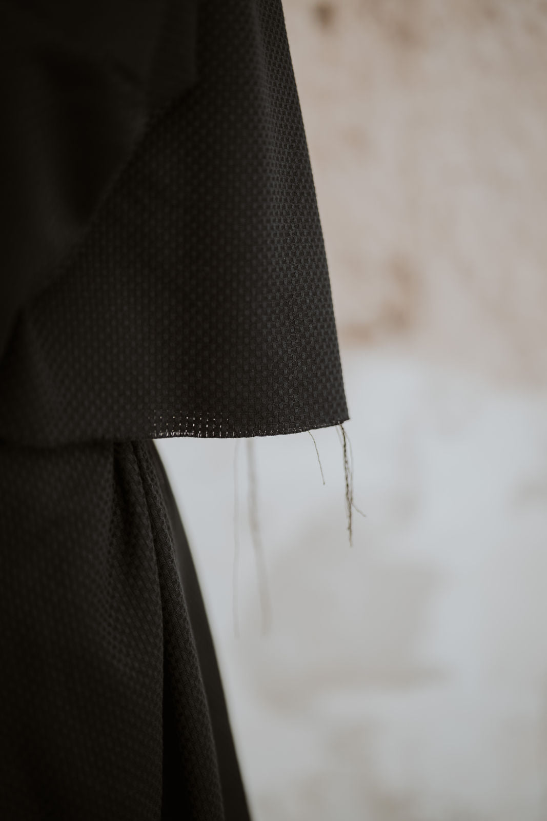 Besonderes Detail ist die offene, ausgefranste Saumkante.